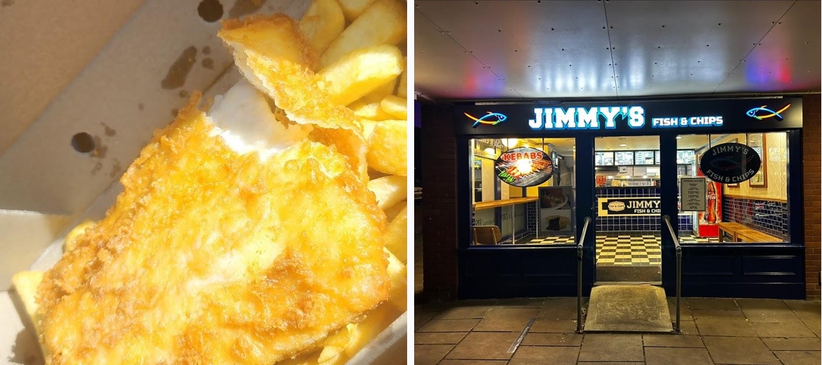 What can I say, beautiful fresh COD in a light crisp batter and chips all cooked to perfection. Friendly staff, very chatty and welcoming. Jimmy's is definitely worth a visit.